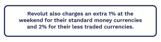 Revolut sets its own variable exchange rate known as the ‘Revolut Rate’, the FX percentage applied to their rate isn’t clearly displayed in the app. Tests in Q1 2025 showed that on average, the Revolut rate was 0.3% more expensive than the interbank rate. Further research also shows Revolut applies a weekend exchange rate markup, adding an extra 1% fee to all transactions between Friday 5 PM and Sunday 6 PM.
