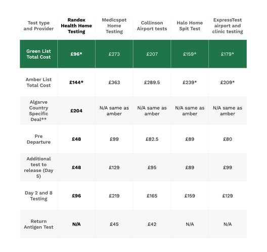 Ranking in first place is Randox Health Home testing. When it comes to pricing, they are the most budget friendly at nearly half the price of the other providers, and are now offering packages for pre and post travel, providing a range of options for both double-vaccinated and unvaccinated travellers.