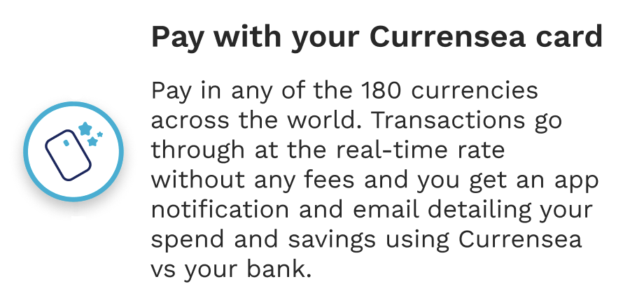 Currensea has no weekend charges, no foreign currency purchase fee, no dormant card fees, and no non-sterling transaction fees.